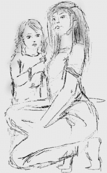 Use your sketches as a mental note of important details, like the slight arc of the woman’s back, or the way the child clings for security.